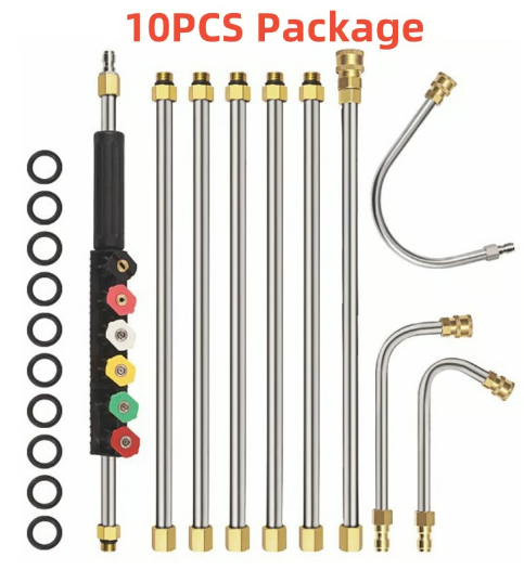 Setti sisÀltÀÀ suoria ja kaarevia tankoja, tarjoten sekÀ ulottuvuutta ettÀ joustavuutta tehokkaaseen ja turvalliseen rÀnnien puhdistukseen. Ulotu helposti vaikeapÀÀsyisiin paikkoihin varmistaaksesi, ettÀ rÀnnit pysyvÀt puhtaina ja tukkeutumattomina.