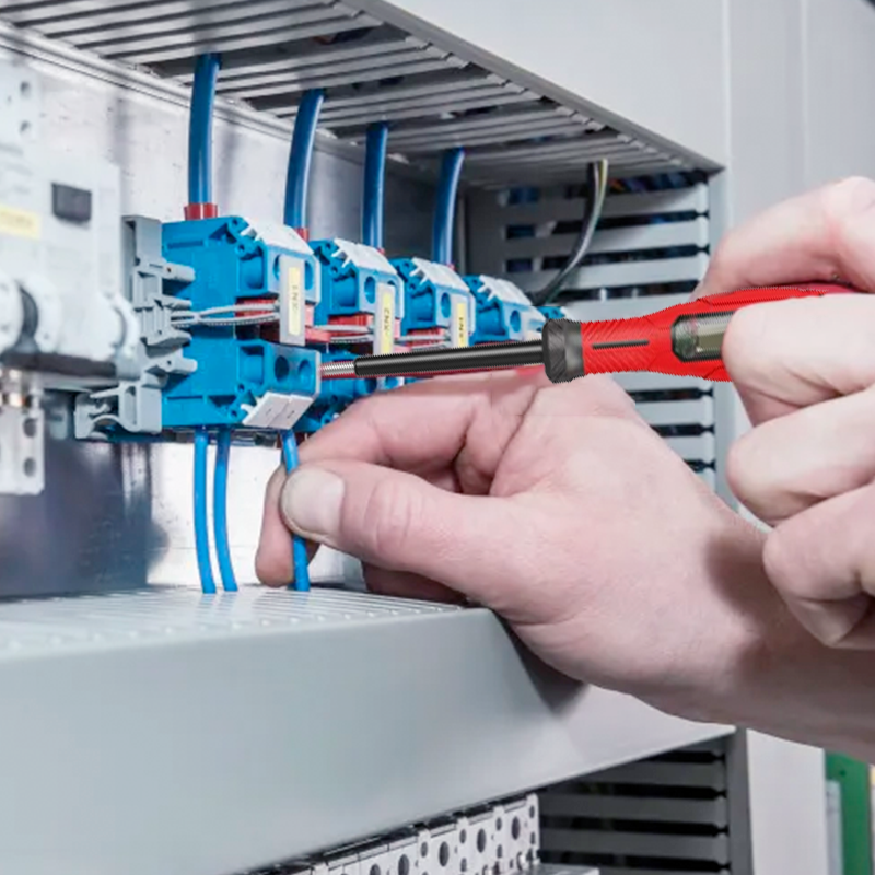 INTELLIGENT KABELDETEKTERING: Utrustad med en intelligent krets för att säkert identifiera fas- och nolledarkablar. När du rör vid kopparterminalen och detekterar uttaget indikerar den röda och gröna lampan fasledaren, och endast den gröna lampan indikerar nolledaren.