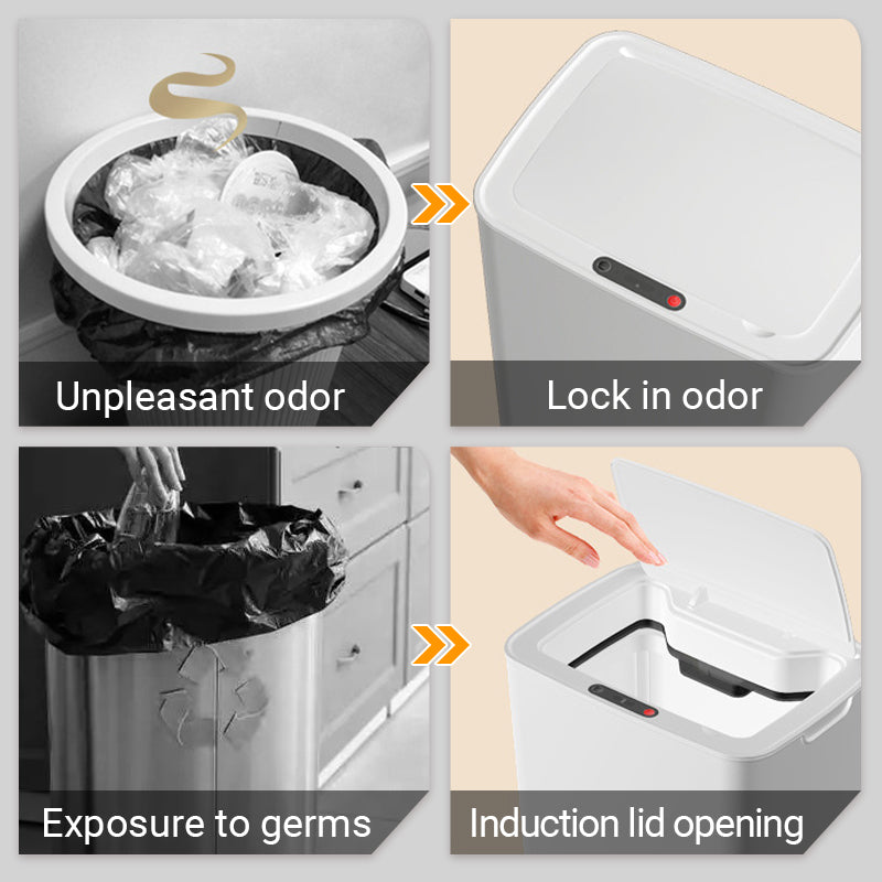 Upplev framtiden för avfallshantering med den intelligenta sensorsoptunnan med lock. Denna banbrytande soptunna kombinerar innovativ teknik med praktisk design för att göra hanteringen av ditt hushållsavfall enkel och hygienisk.
