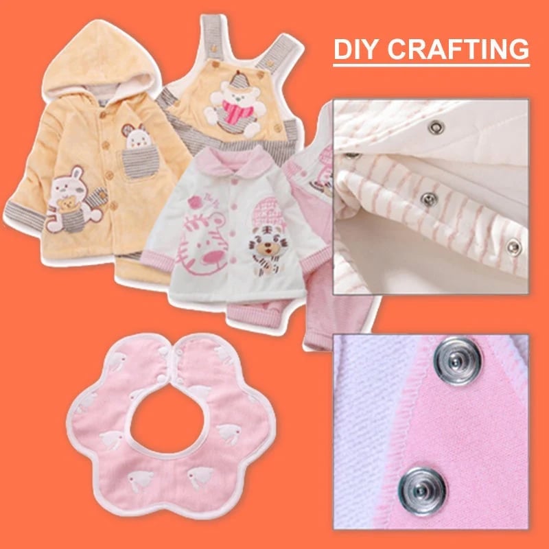 Perfekt för att lÀgga till tryckknappar pÄ befintliga föremÄl (laga trasiga, uppgradera klÀder).