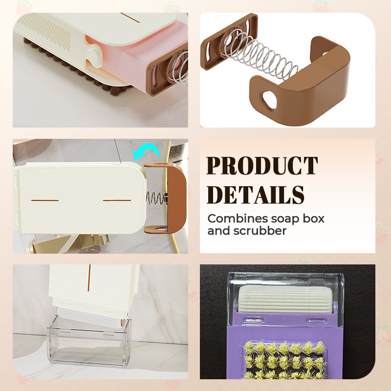ALLT-I-ETT-FUNKTIONALITET: Denna produkt kombinerar flera funktioner i ett. Den fungerar som en tvålask för att förvara din tvål, en skrubb för rengöring av olika ytor och en förvaringsdispenser som ger en kontinuerlig tillförsel av tvål. Denna allt-i-ett-design sparar utrymme och förenklar din rengöringsrutin och eliminerar behovet av flera separata rengöringsverktyg.