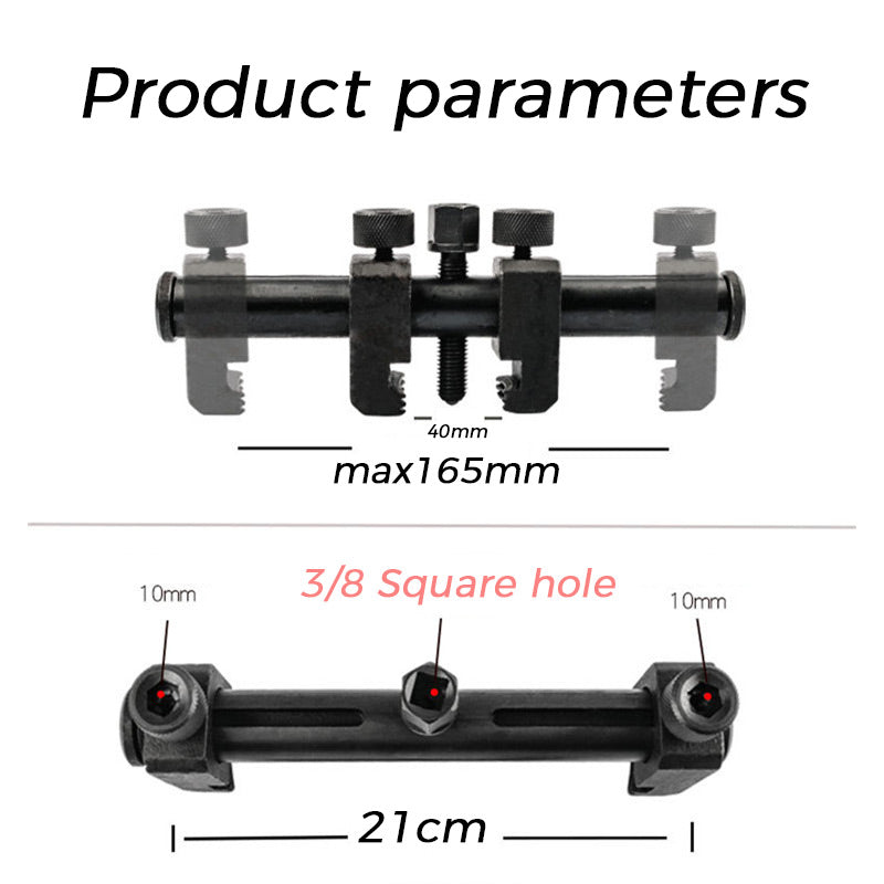 JUSTERBAR DESIGN - Denna justerbart verktyg för borttagning av vevaxelskivor Àr utrustat med justerbara armar, med ett justerbart omrÄde pÄ 40-165 mm, vilket gör det möjligt att rymma olika storlekar av vevaxelskivor.